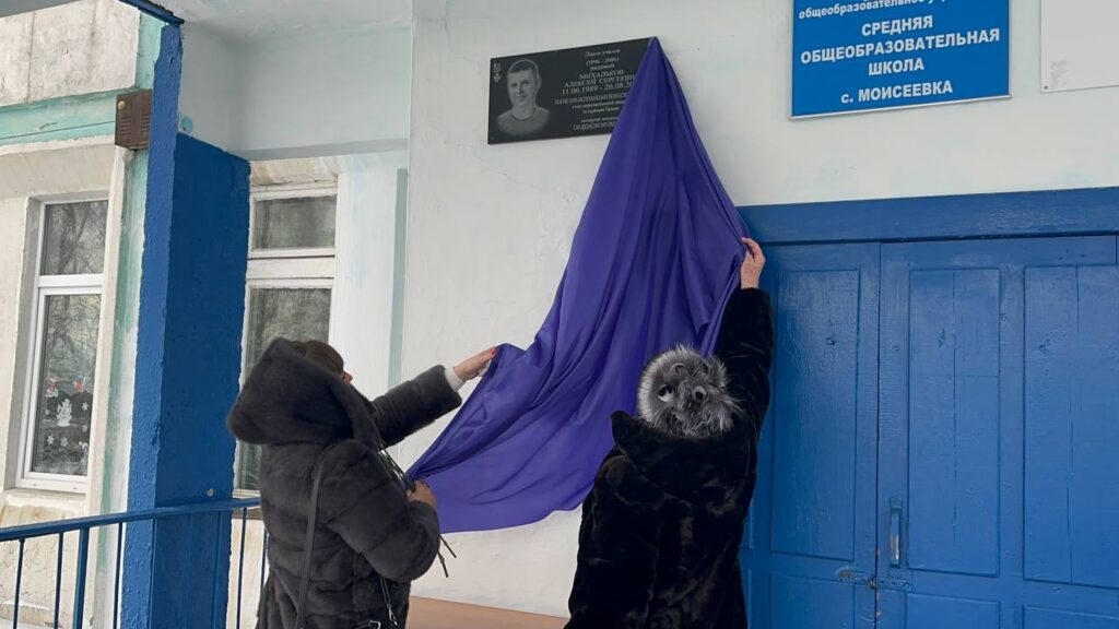 О торжественной церемонии установления памятной доски на здании Моисеевской школы погибшему участнику специальной военной операции на территории Украины Алексею Сергеевичу Михалькову.